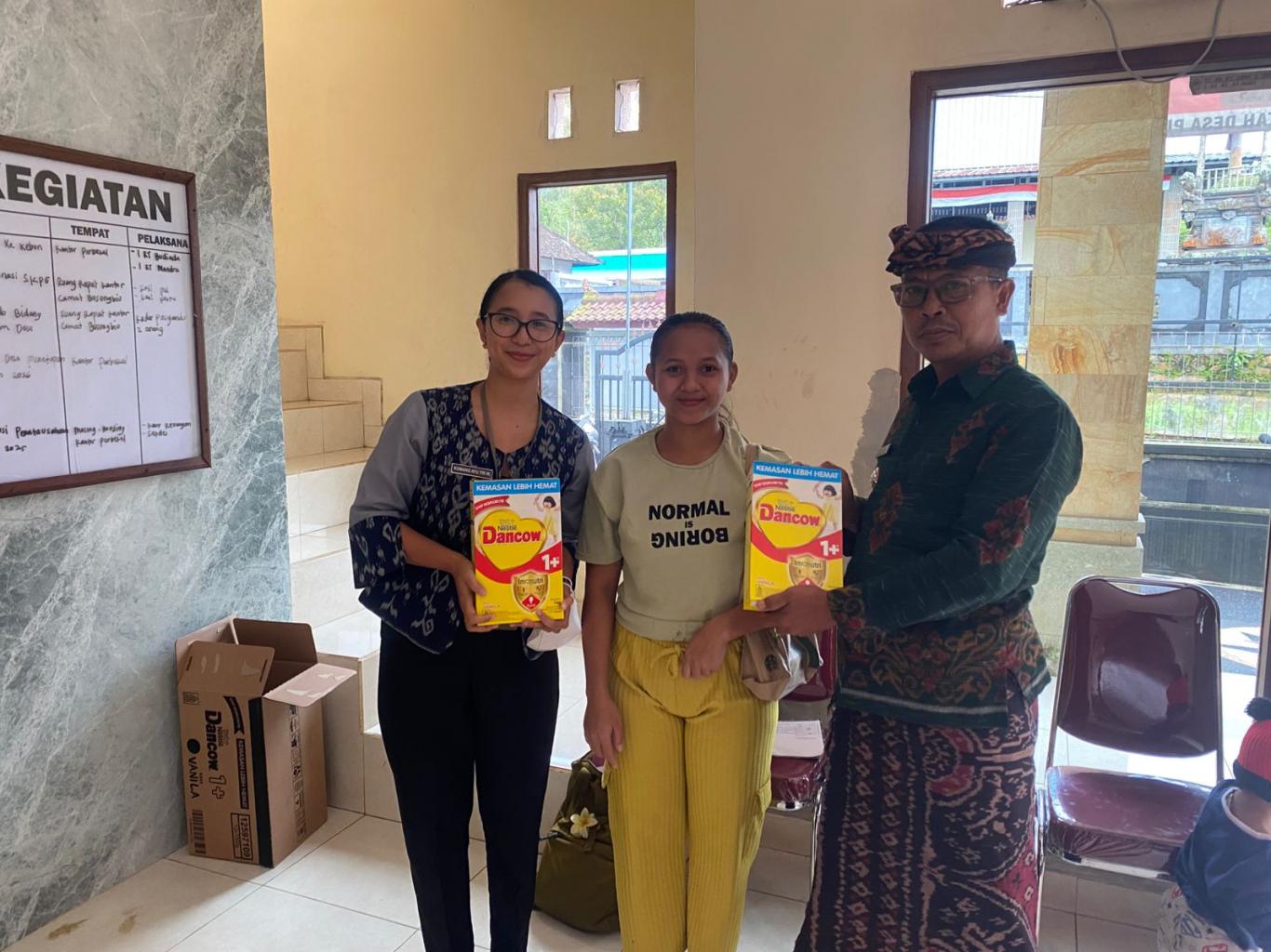 Bantuan yang diberikan berupa dua liter susu, satu kilogram telur, dan biskuit. Seluruh paket tersebut disesuaikan dengan kebutuhan nutrisi balita penerima manfaat.